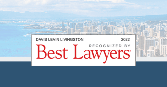 The following Davis Levin Livingston attorneys were listed in The Best Lawyers in America 2022 for their stellar work in Honolulu, Hawaii: